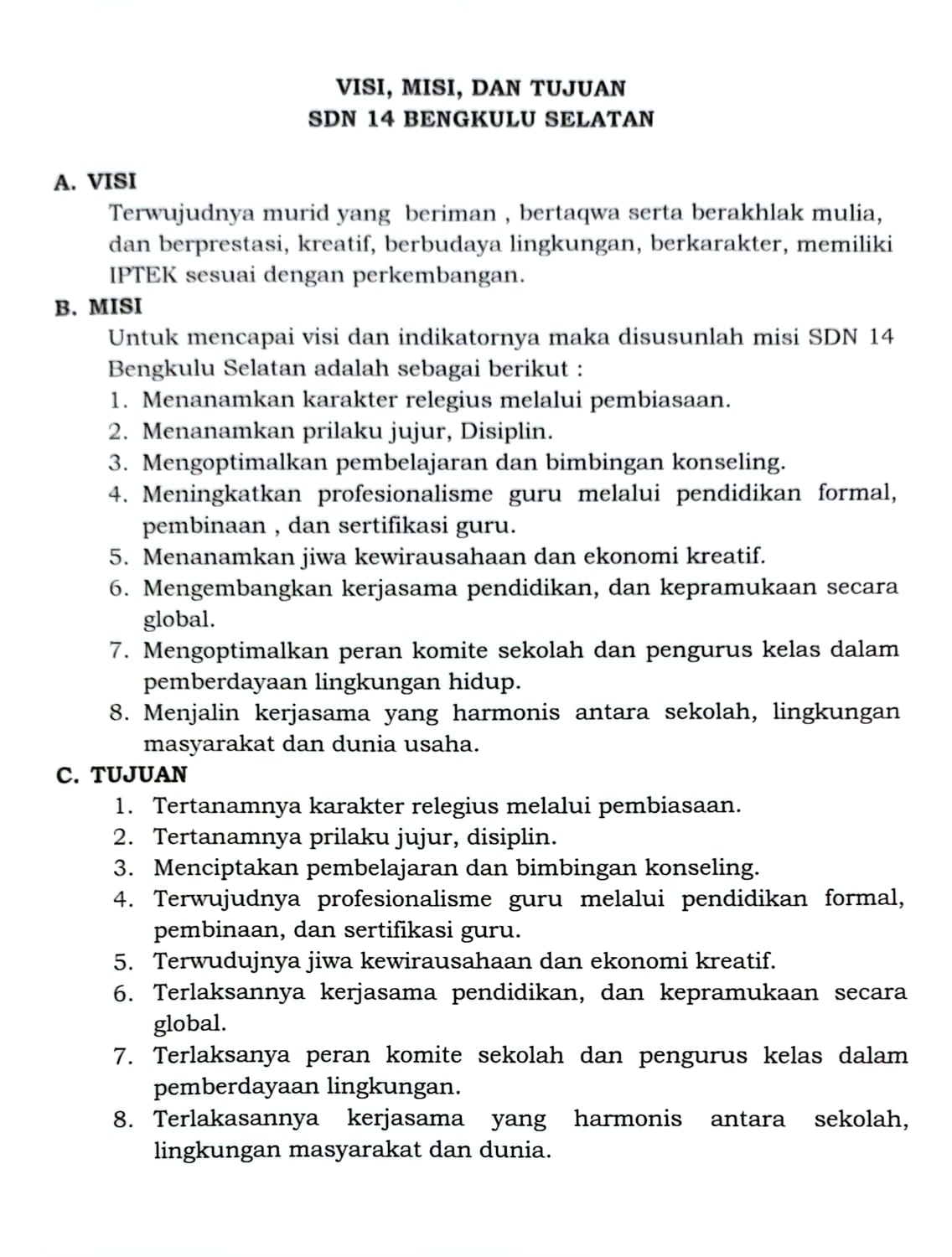 STRUKTUR ORGANISASI SDN 14 BENGKULU SELATAN